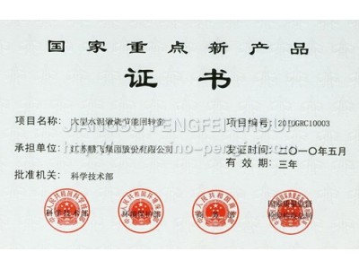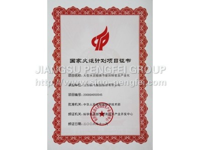 Certificate of environment construction project of national torch plan projects